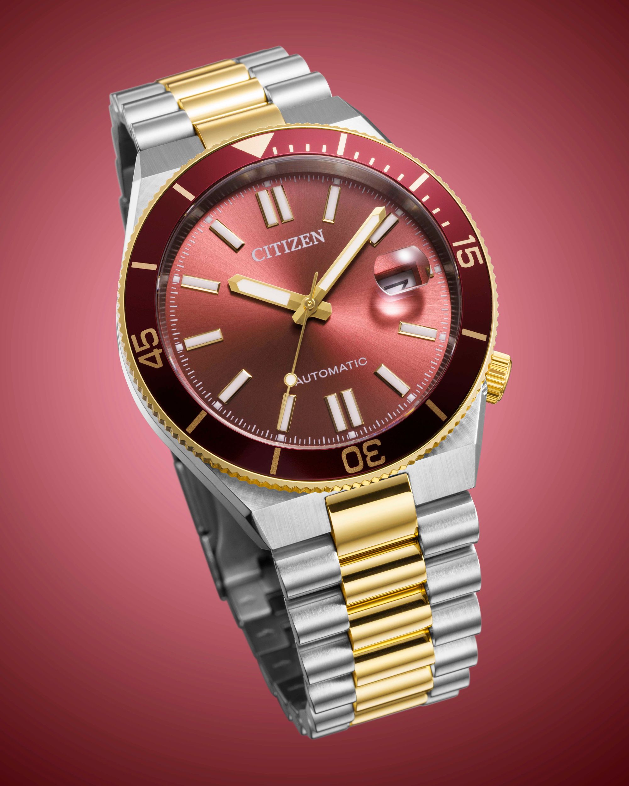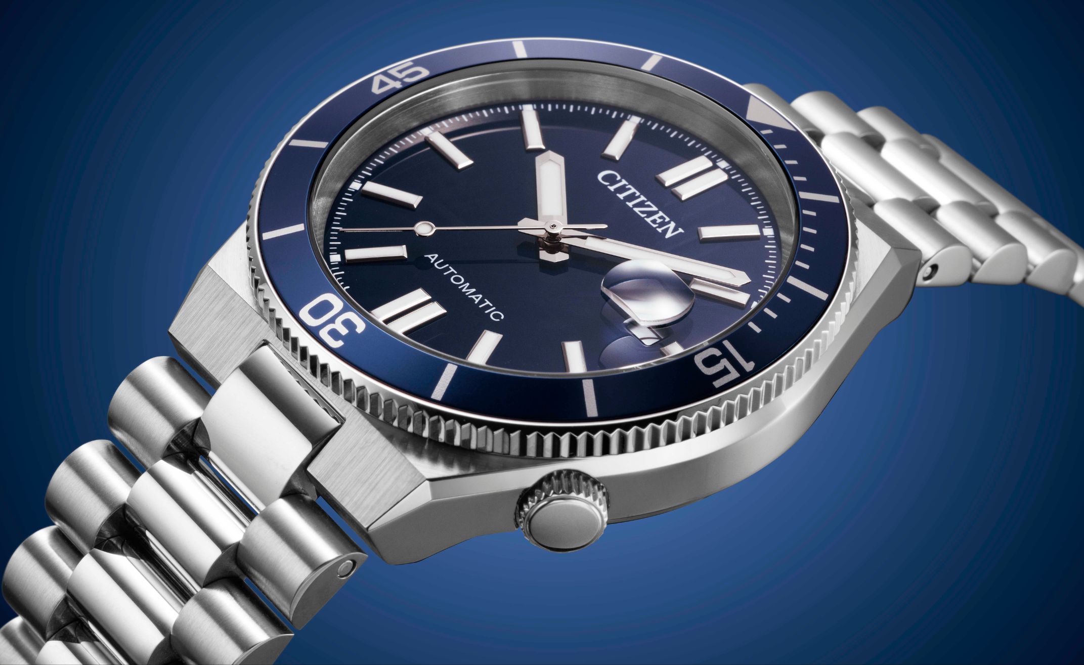 Im Inneren arbeitet das bewährte CITIZEN Inhouse-Automatikwerk Kaliber 8210, sichtbar durch den Glasboden. Die Gangreserve liegt bei rund 42 Stunden. Das Edelstahlgehäuse misst 40 Millimeter im Durchmesser bei einer Höhe von 12,5 Millimetern und bleibt damit ausgewogen proportioniert.