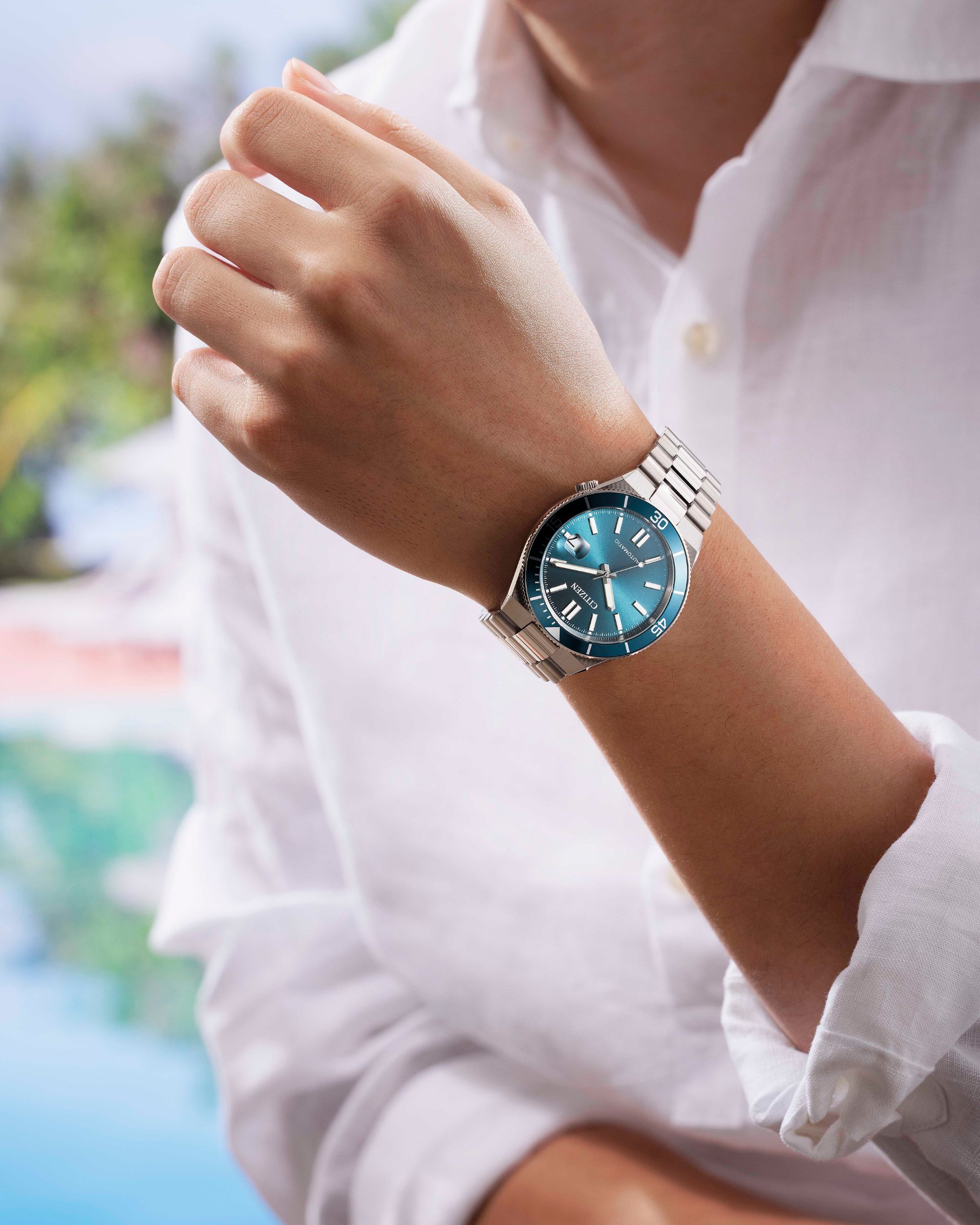 Ein zentrales Merkmal der neuen Shore-Modelle ist die auf 10 bar erhöhte Wasserdichtigkeit. Während die bisherigen TSUYOSA-Varianten mit 5 bar vor allem für den urbanen Alltag ausgelegt waren, reagiert CITIZEN mit der Shore-Kollektion gezielt auf den Wunsch vieler Uhrenfans nach mehr Vielseitigkeit. Schwimmen und Schnorcheln sind nun problemlos möglich.