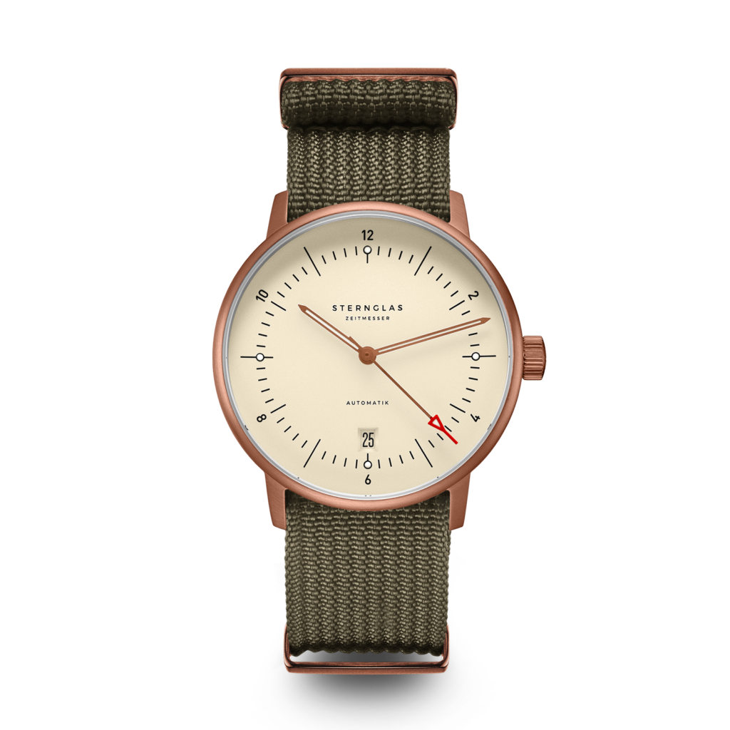 The model isn't just a favorite among the large Sternglas community. The "Naos" has already won several design awards and is available in various versions. Now, the Hamburg-based brand presents the "Naos Automatic" in the new alabaster bronze color variant.