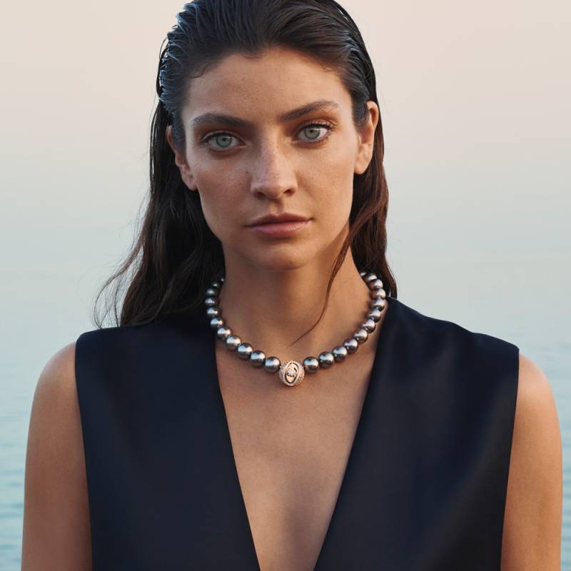 The famous interchangeable clasp is the brand's signature element. It allows for flexible design and endless combinations of necklaces and chokers – with pearls, diamond pavé, gold sculptures, or colored elements. The collections range from clean, modern lines to organic shapes, yet always remain finely crafted and comfortable to wear.