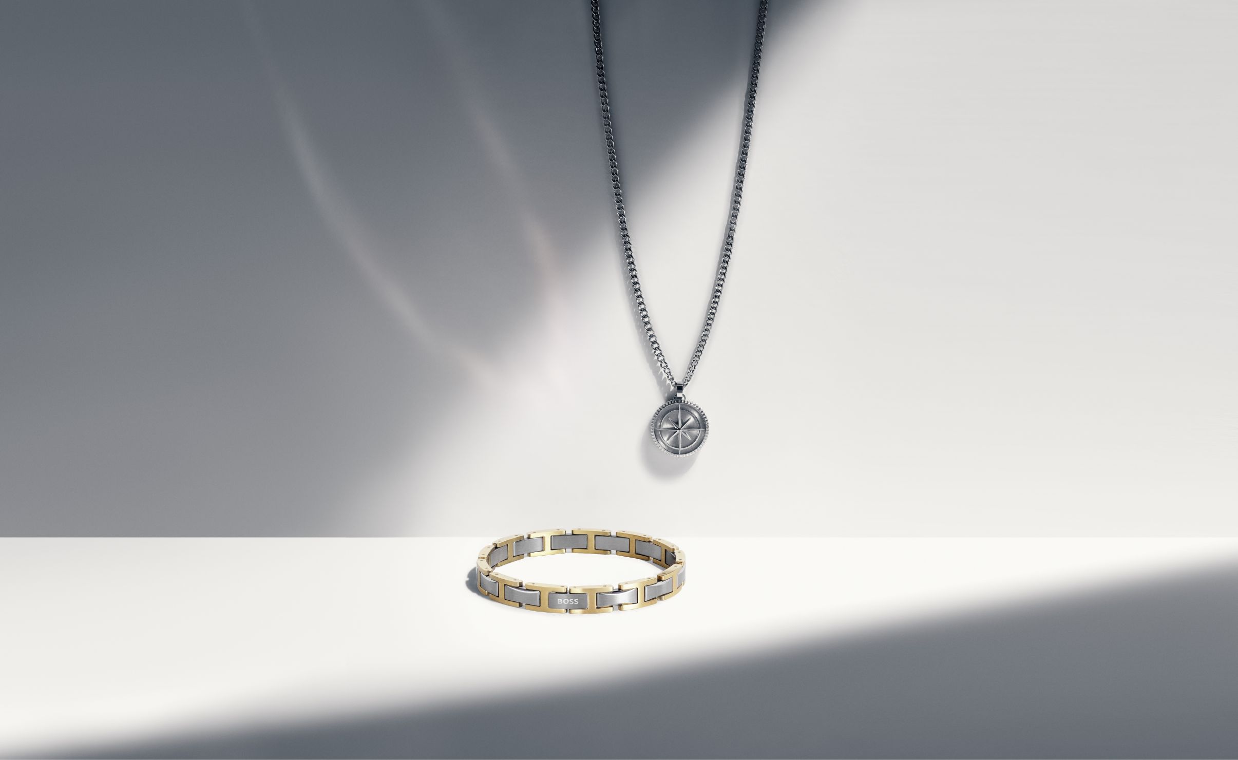 The North The BOSS Jewelry collection translates the symbolism of a compass into modern menswear design. Each piece represents orientation, clarity, and determination – qualities reflected in the minimalist design language.